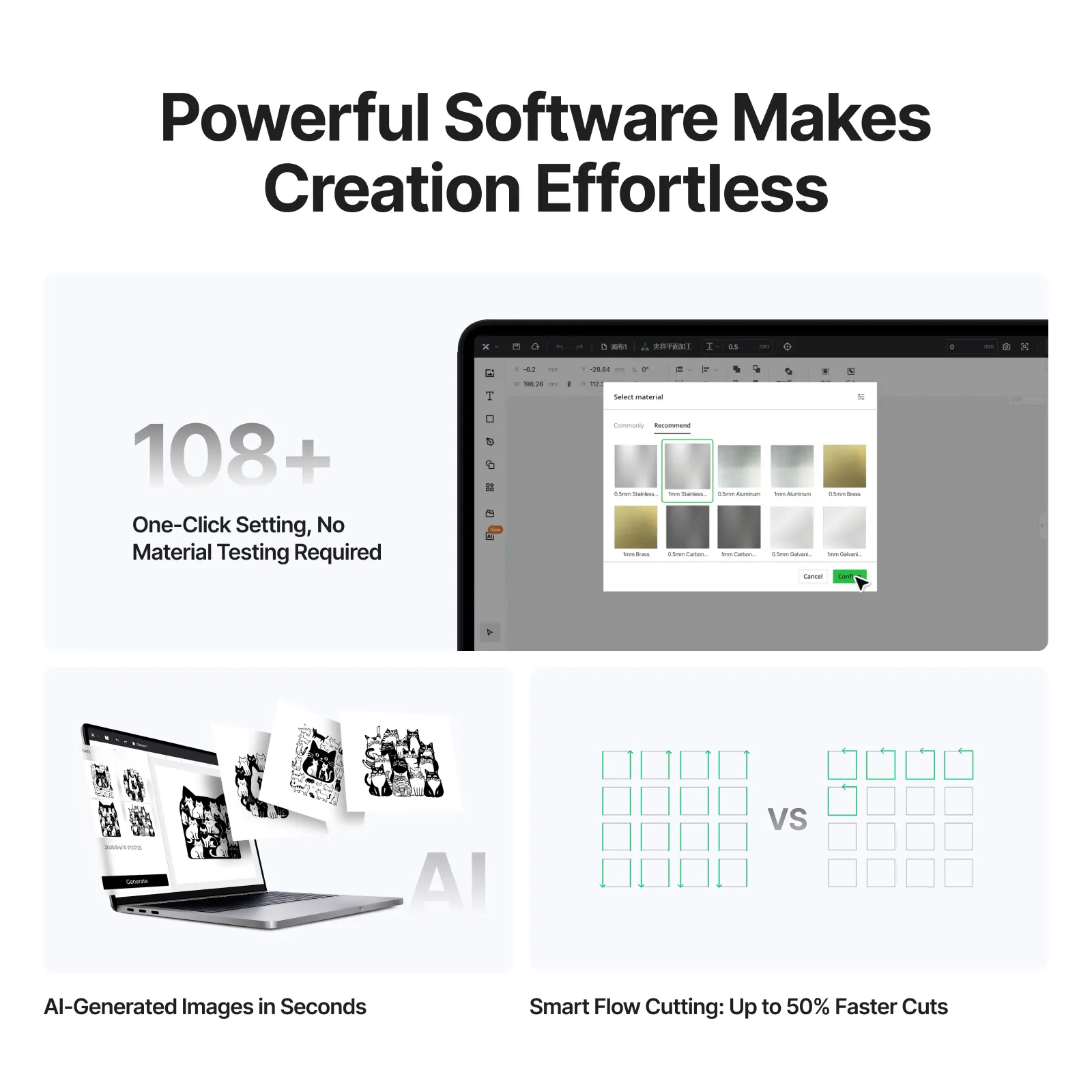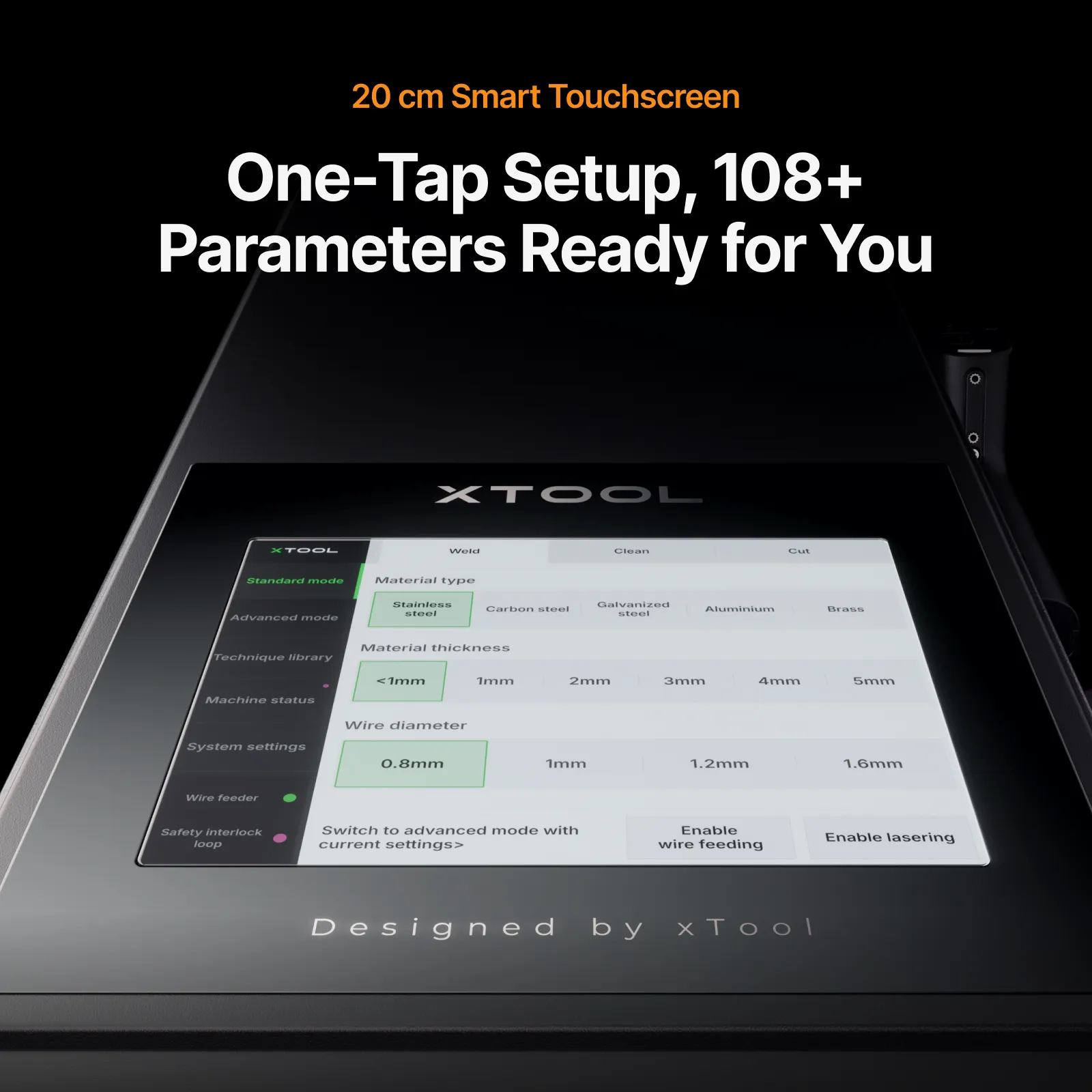 xTool MetalFab 1200W združuje tri funkcije v enem sistemu: lasersko varjenje, lasersko rezanje in lasersko čiščenje. Kompaktna in mobilna rešitev je zasnovana za natančno obdelavo nerjavnega jekla, aluminija, medenine, konstrukcijskega jekla ter pocinkane pločevine. Prek pametnega zaslona je mogoče izbirati med več kot 108 prednastavljenimi laserskimi parametri ali v brezplačni programski opremi xTool shraniti svoje nastavitve.